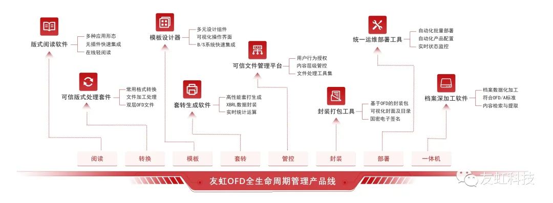 友虹科技作为联合实验室的理事单位,坚持以国产自主知识产权OFD版式标准为核心技术,为用户打造自主、安全、可信的基础软件应用基座。友虹科技具备功能齐备的国产版式软件产品体系,覆盖了数字医疗报告从阅读、生成、处理、分享、管控及利用的全生命周期各个关键节点,促进了医疗健康便民服务的场景升级,为医疗机构数字化转型提供了新的推动力。