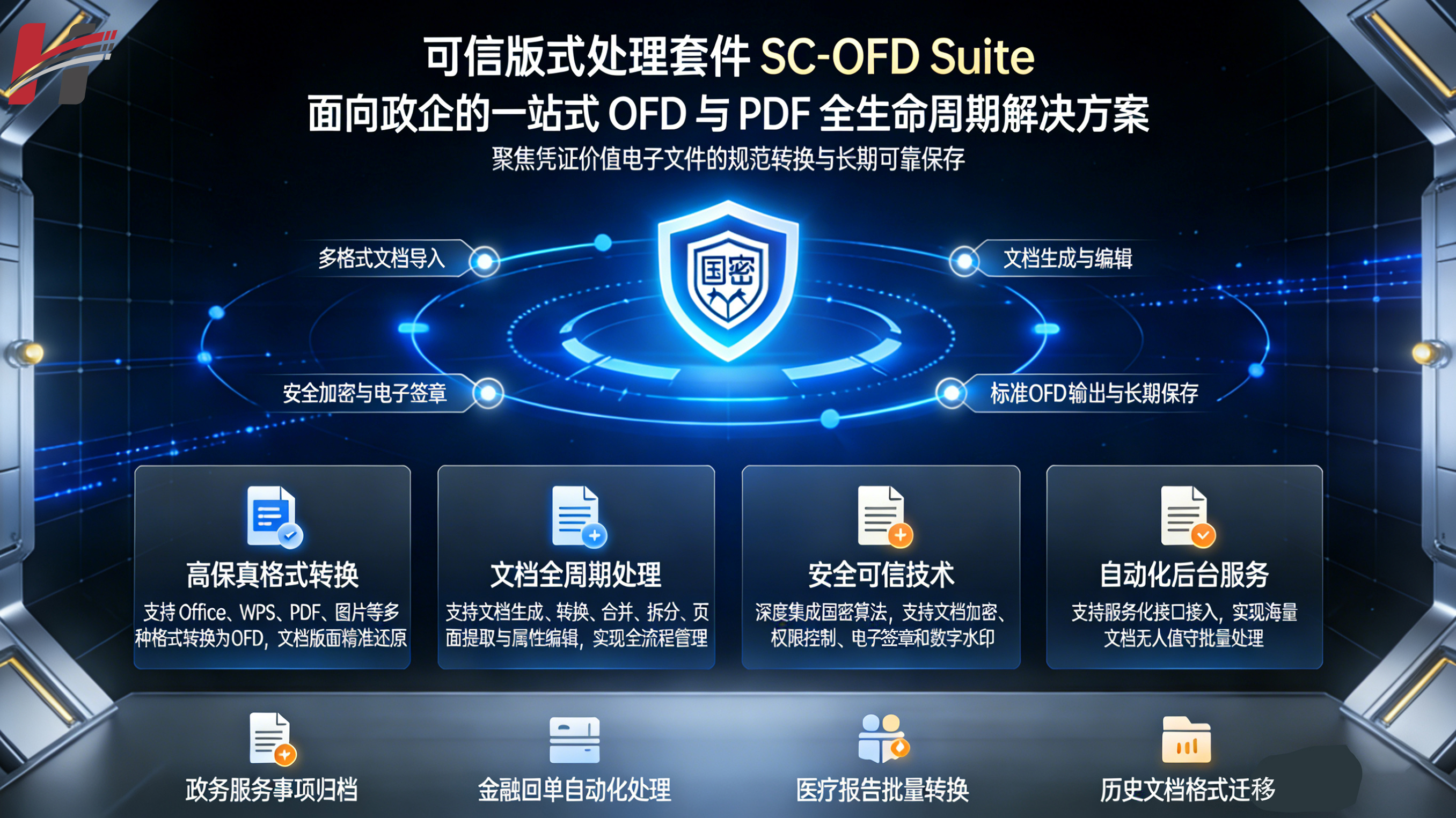 面向政企用户,提供覆盖 OFD/PDF 版式文件全生命周期的处理方案,聚焦具有凭证价值电子文件的规范转换与长期可靠保存